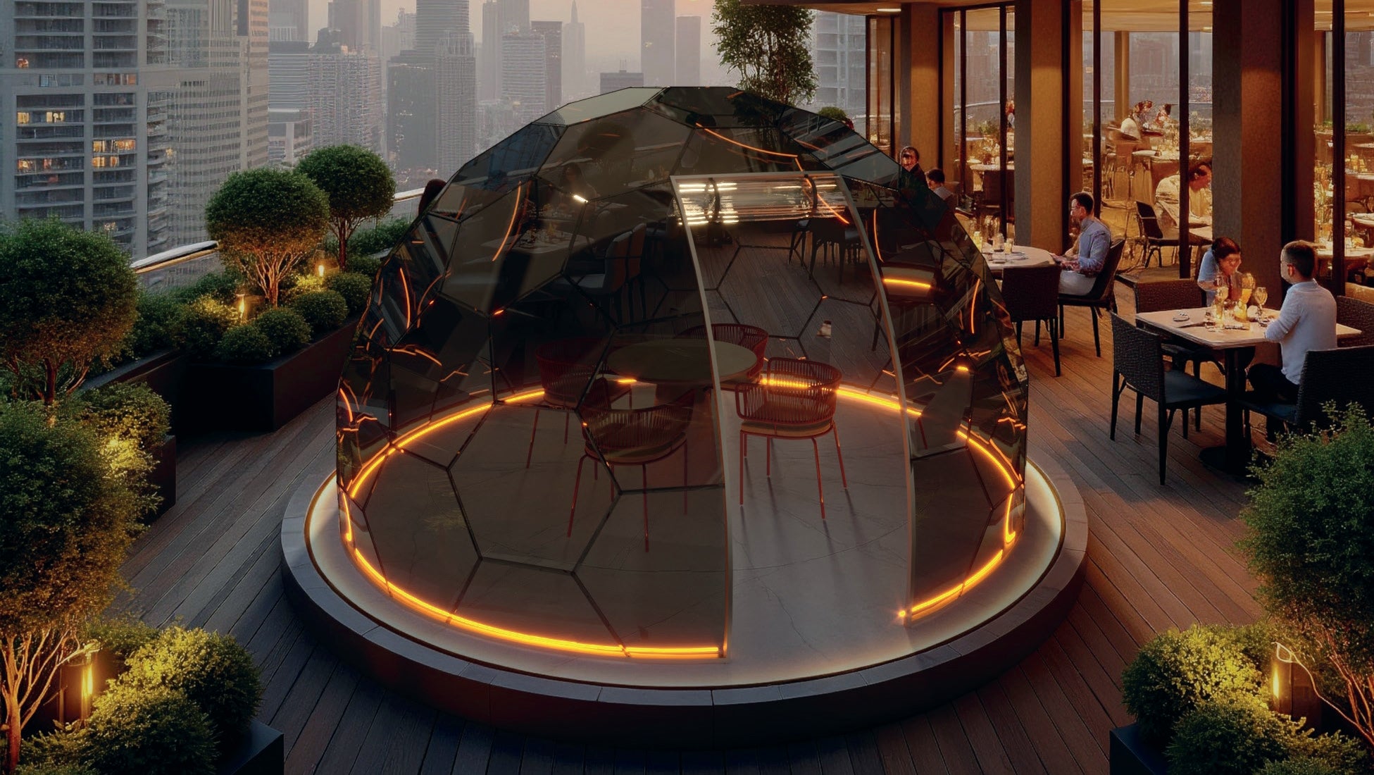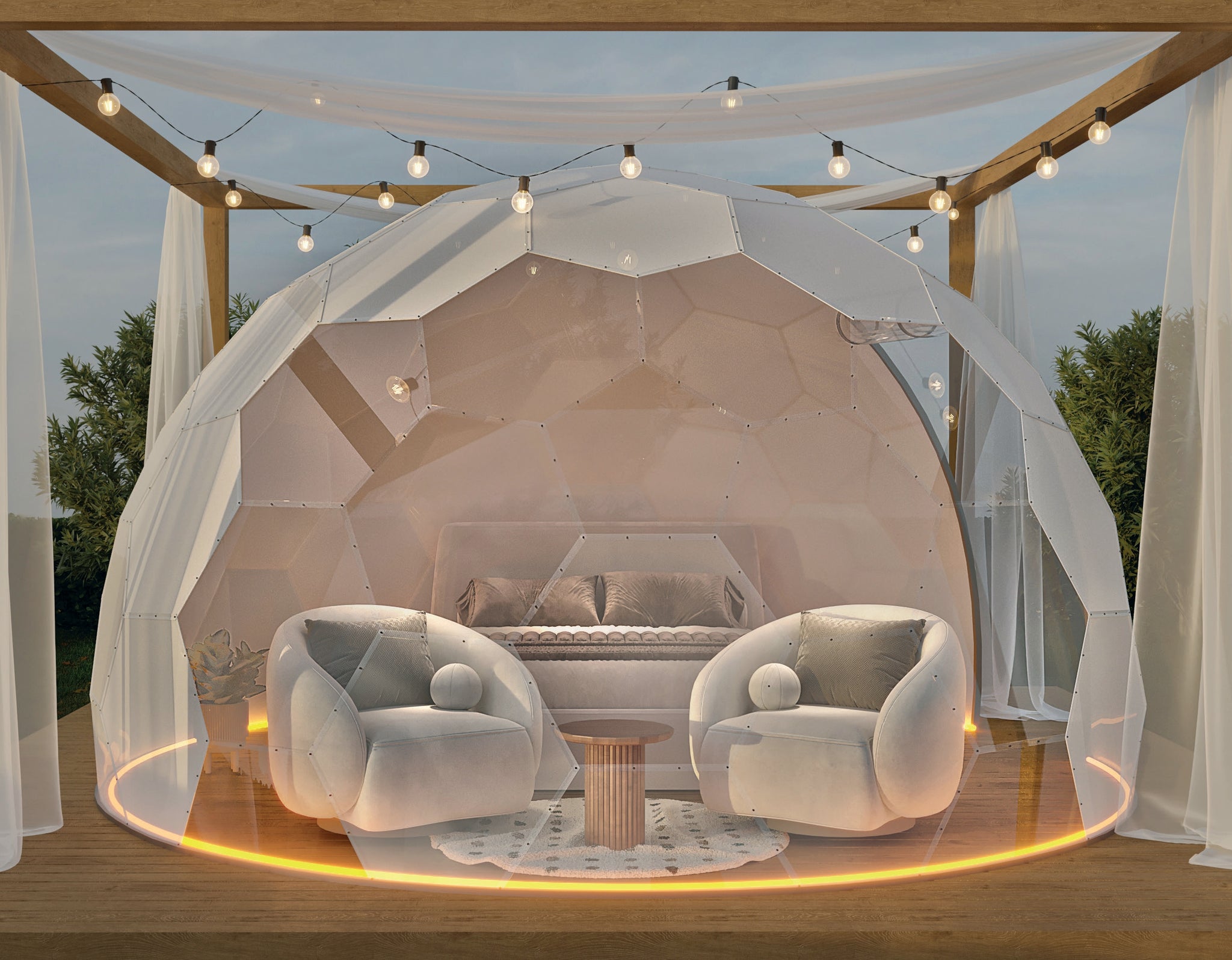 BubbleOrb vereint Ästhetik und Funktionalität und ist somit die perfekte Wahl für jeden Raum. Schaffen Sie einen luxuriösen Wohnraum in den unterschiedlichsten Bereichen, von Gärten über Cafés und Hotels bis hin zu Veranstaltungsorten.