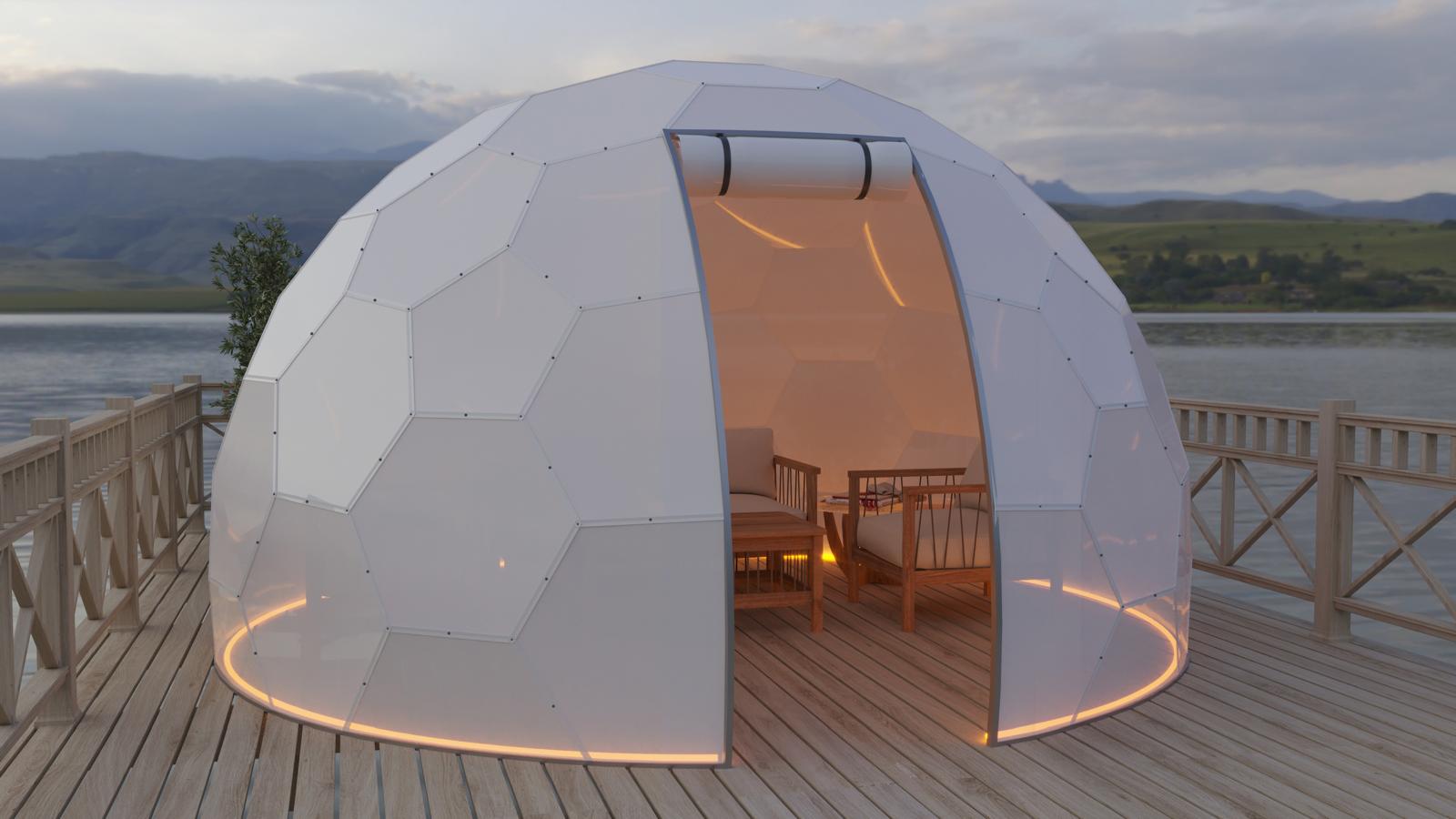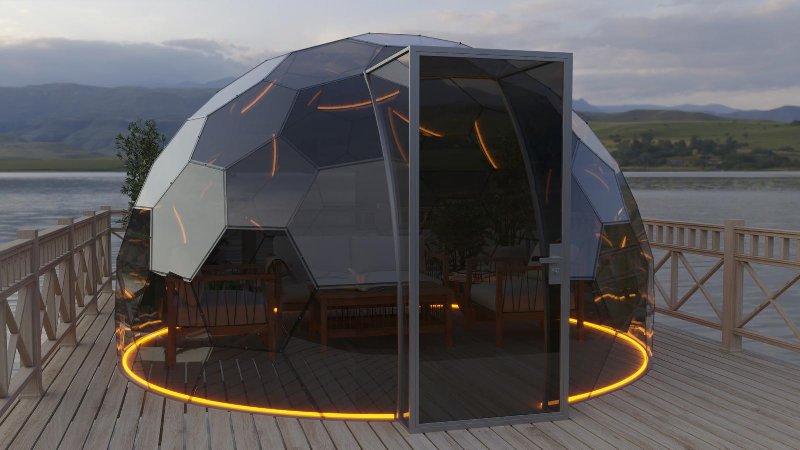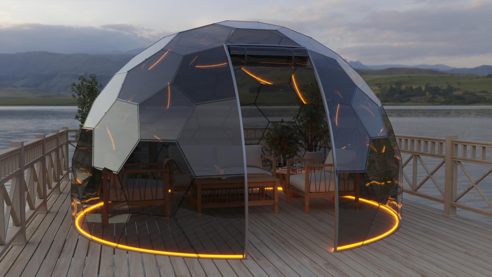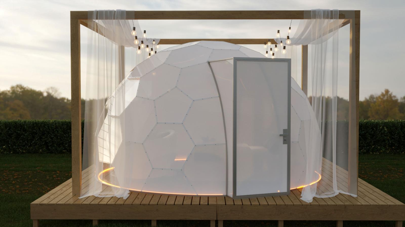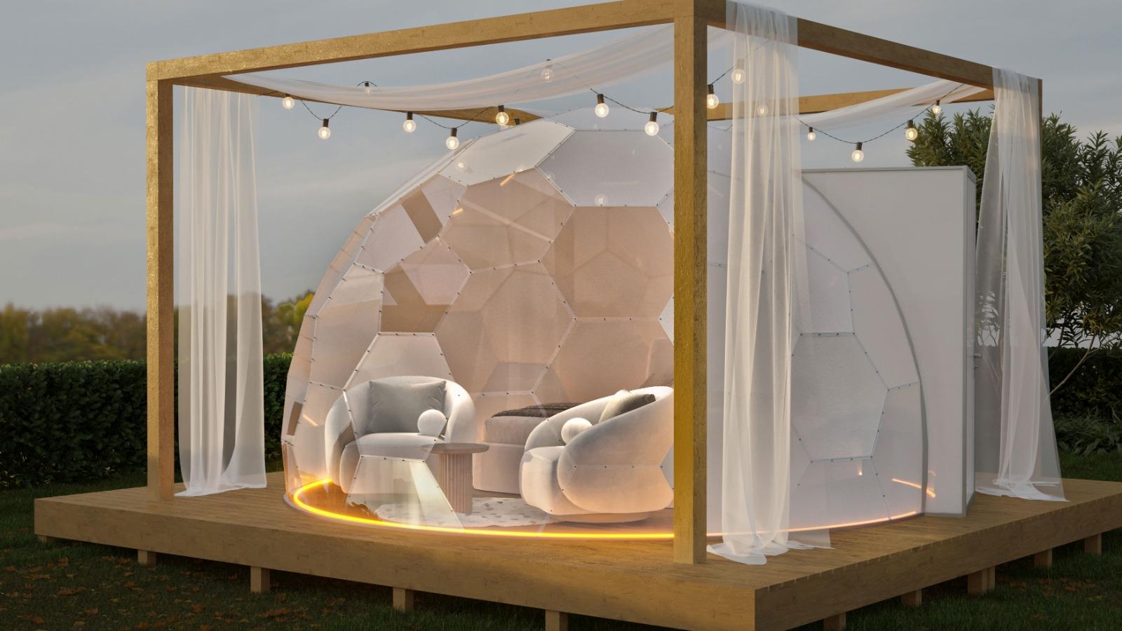Mit seinem modernen Design fügt sich der Bubbleorb harmonisch in die Natur ein und besteht aus speziellen, geometrisch angeordneten Paneelen.