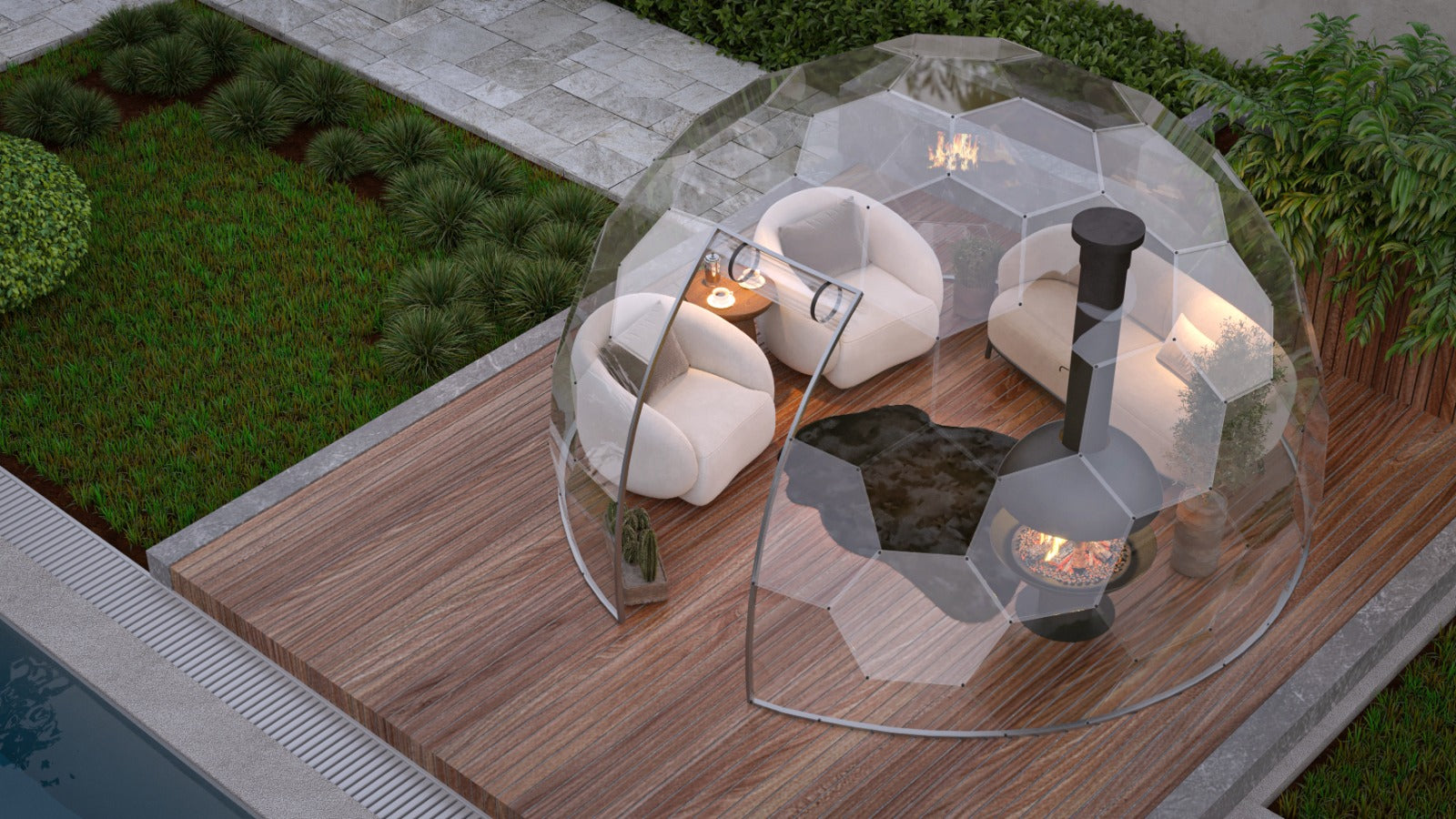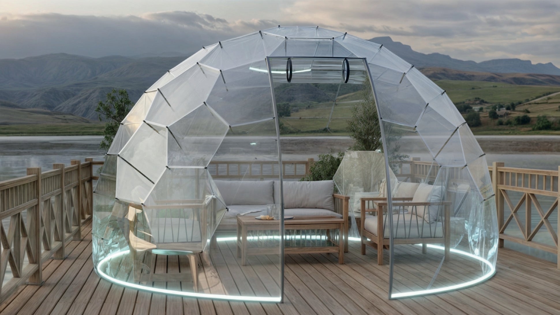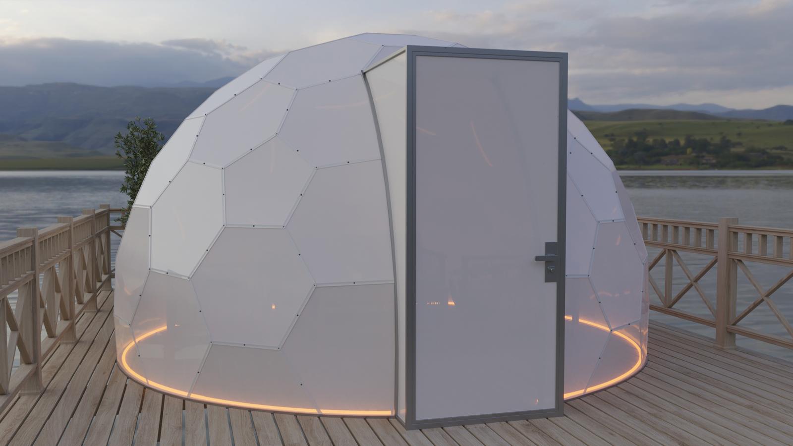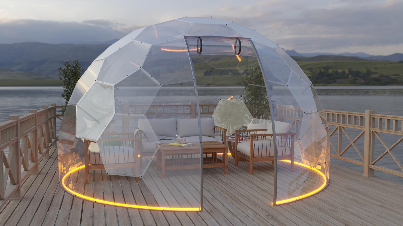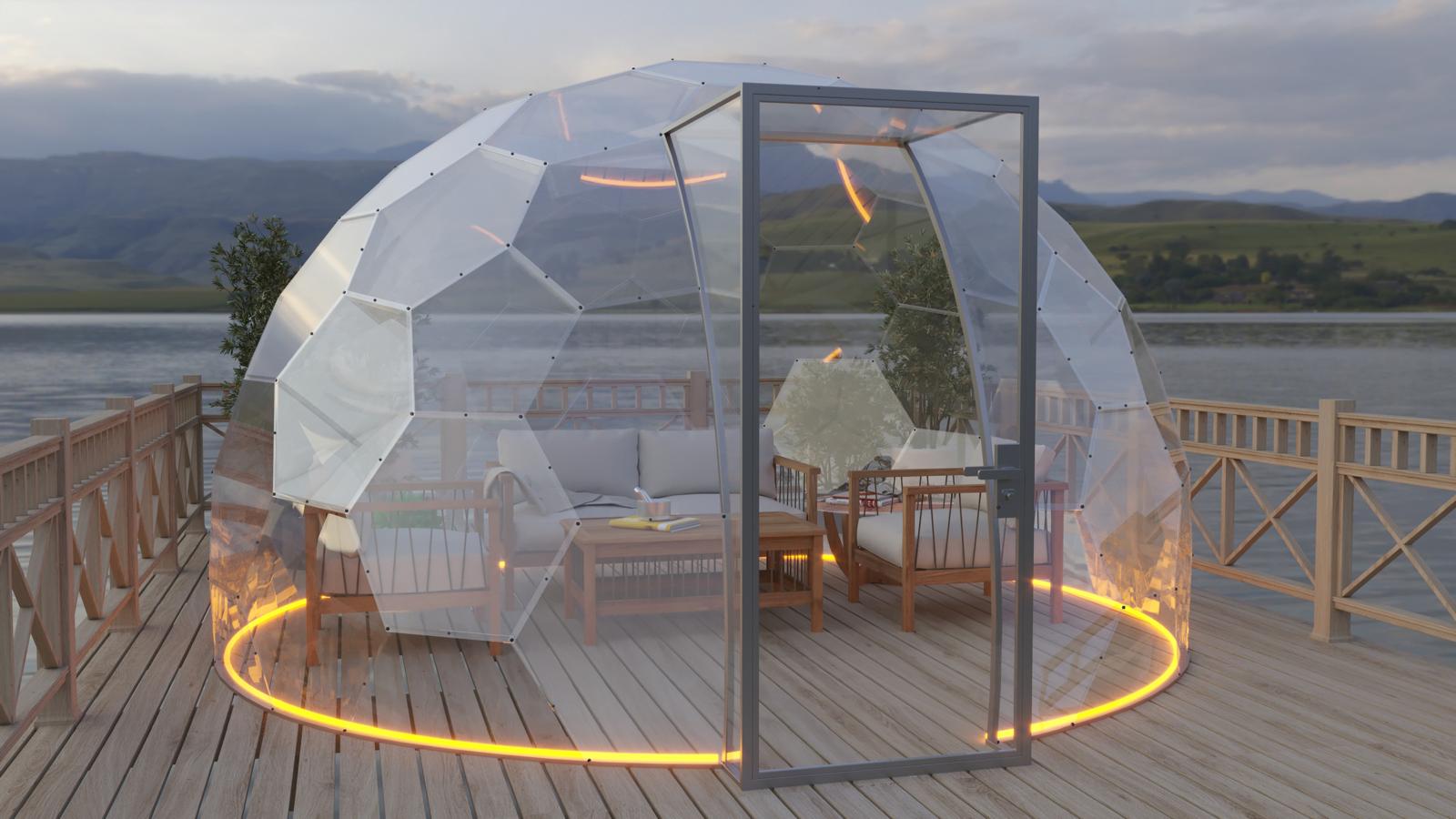 Mit seinem modernen Design fügt sich der Bubbleorb harmonisch in die Natur ein und besteht aus speziellen, geometrisch angeordneten Paneelen.