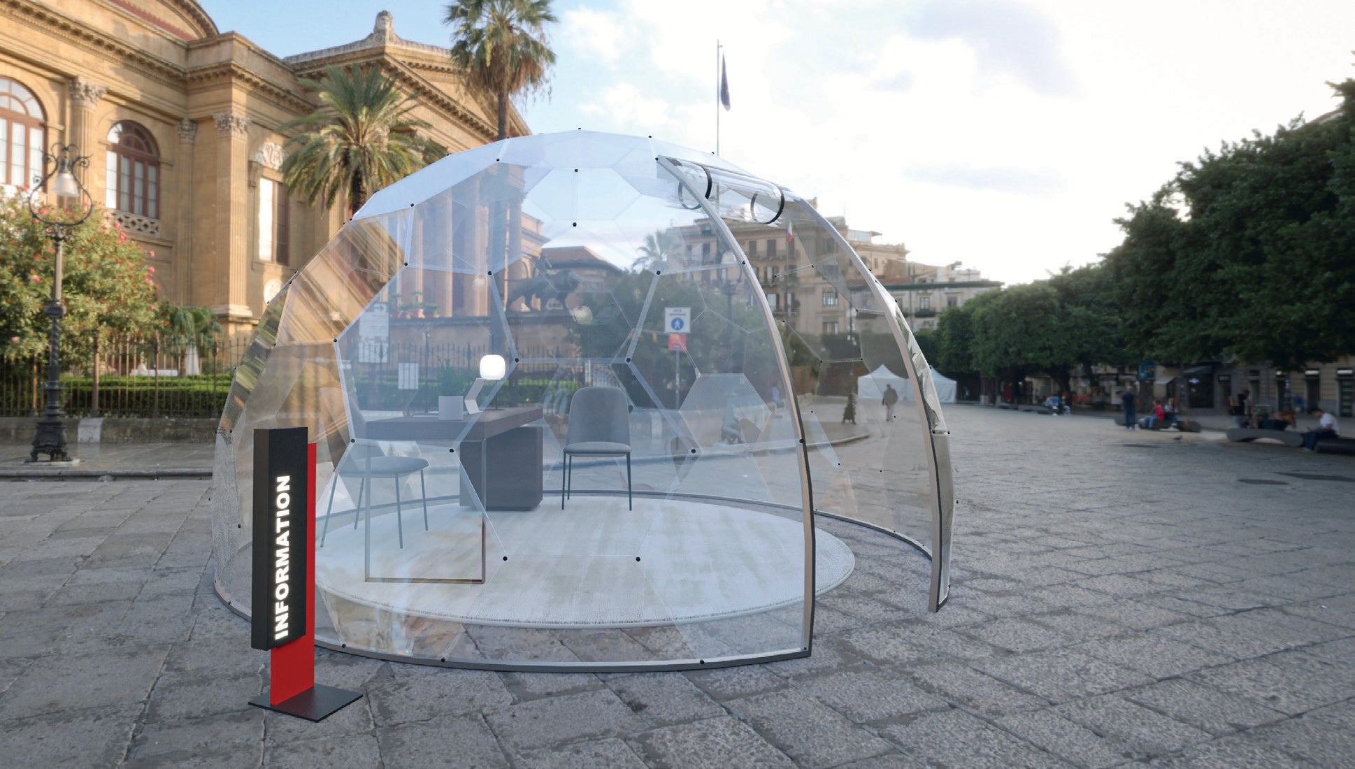 Mit seinem transparenten, modernen Design bietet er einen komfortablen, ästhetischen und funktionalen Raum. Ideal, um gemütliche Ruhezonen auf der Terrasse oder inspirierende Besprechungs-, Arbeits- und Essbereiche in Businesszentren zu schaffen. Setzen Sie überall Akzente – dank des einfachen Aufbaus!